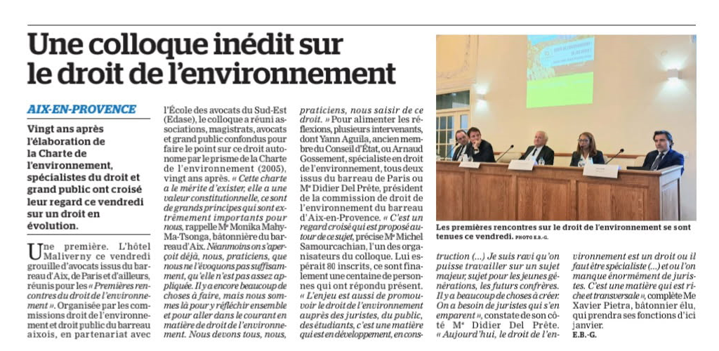 Intervention à la Conférence régionale des Bâtonniers du Grand Sud-Est et de la Corse : Le droit de l’environnement